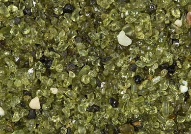 Olivine reacts with carbon dioxide in such a way that the magnesium in the olivine carbonates forming a new carbonated mineral called magnesite.